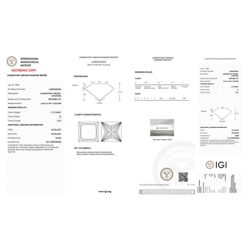 1.73 carat Lab grown Diamond in fancy Princess Shape Diamond
