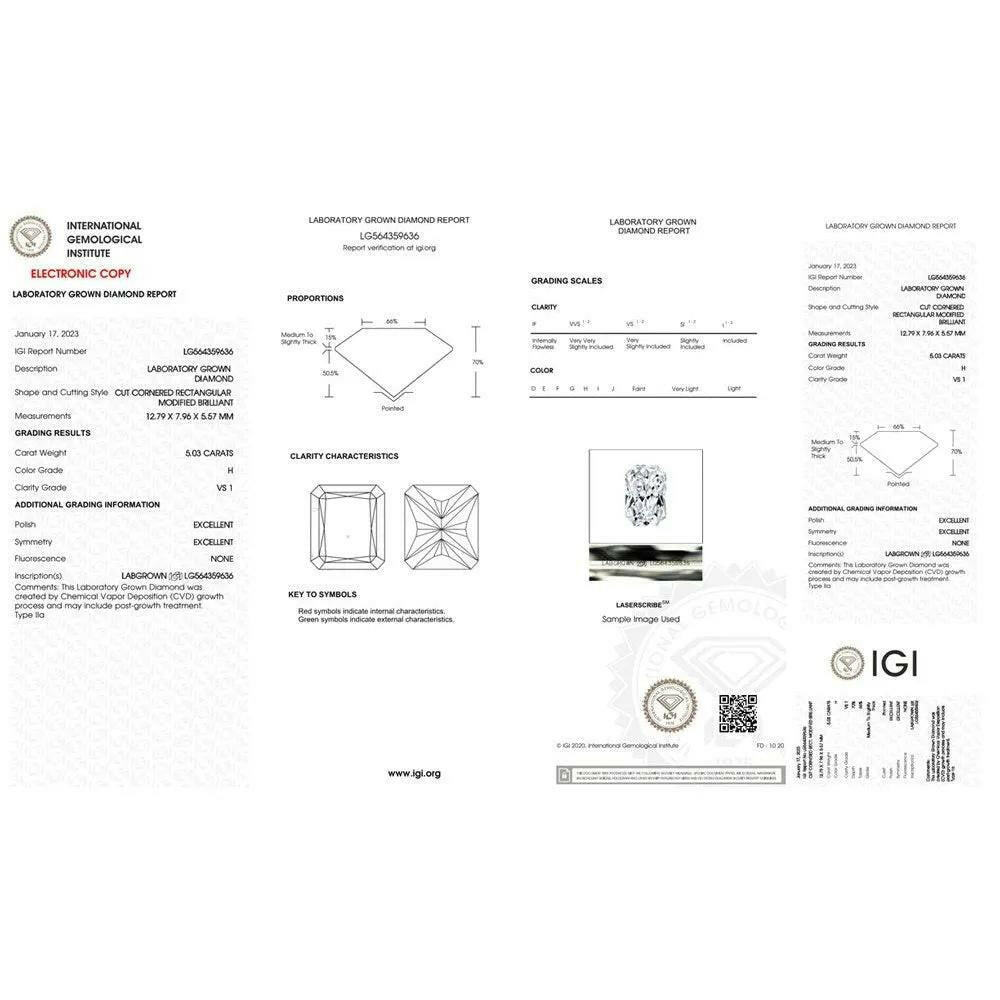5.03ct Lab Grown Diamonds in a Stylish Radiant Shape