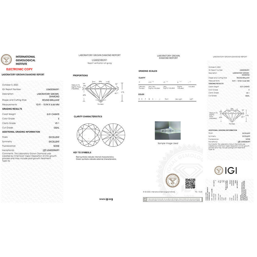 Stunning 5.01 Carat Brilliant Round Lab Grown Loose Diamond