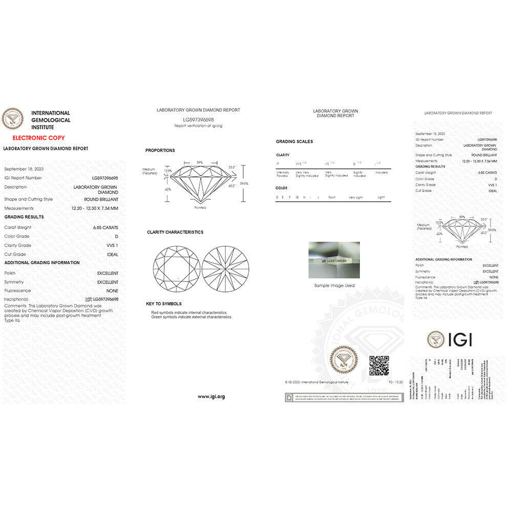Brilliant Round 6.85 Carat Lab Grown Loose Diamond