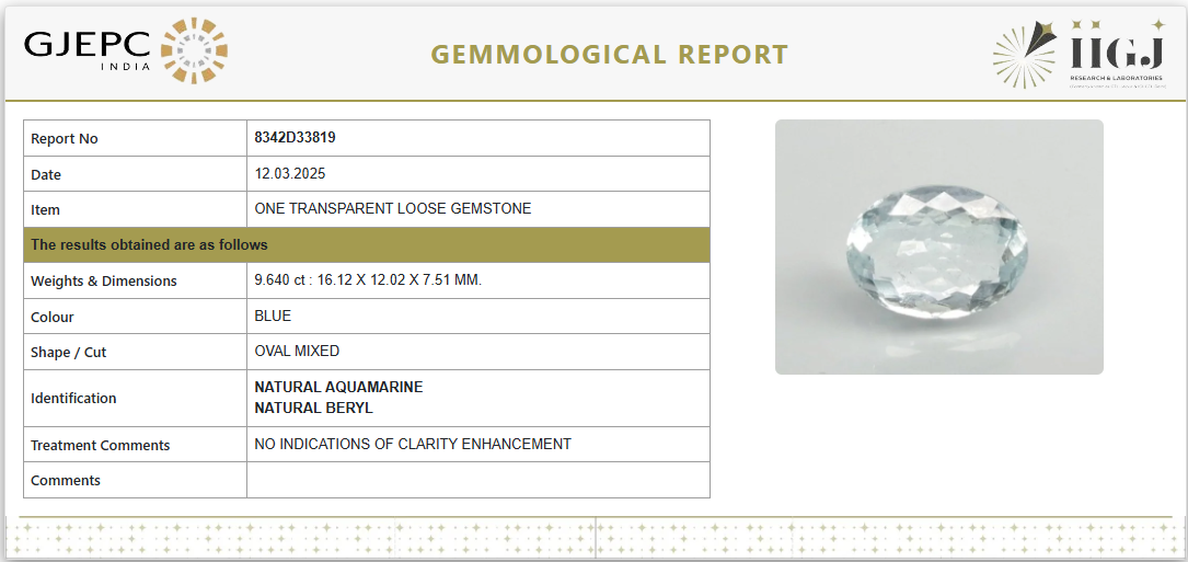 9.64 Carat 10.6 Ratti IGL Certified Natural Brazil Oval Shape Blue Aquamarine Stone.