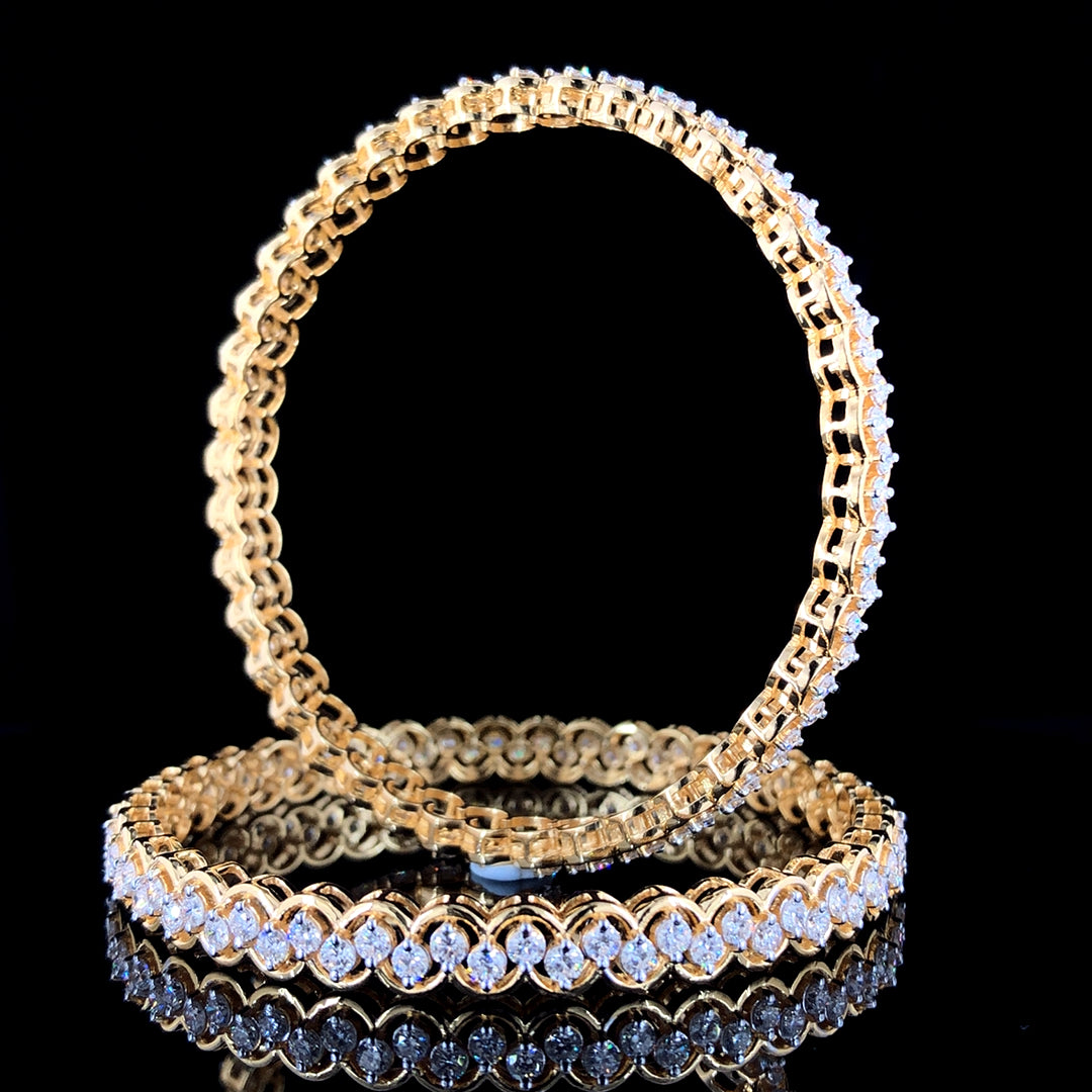 Elegant 18K Yellow Gold Bangles with 8.08ct Round-Shaped Lab-Grown Diamond