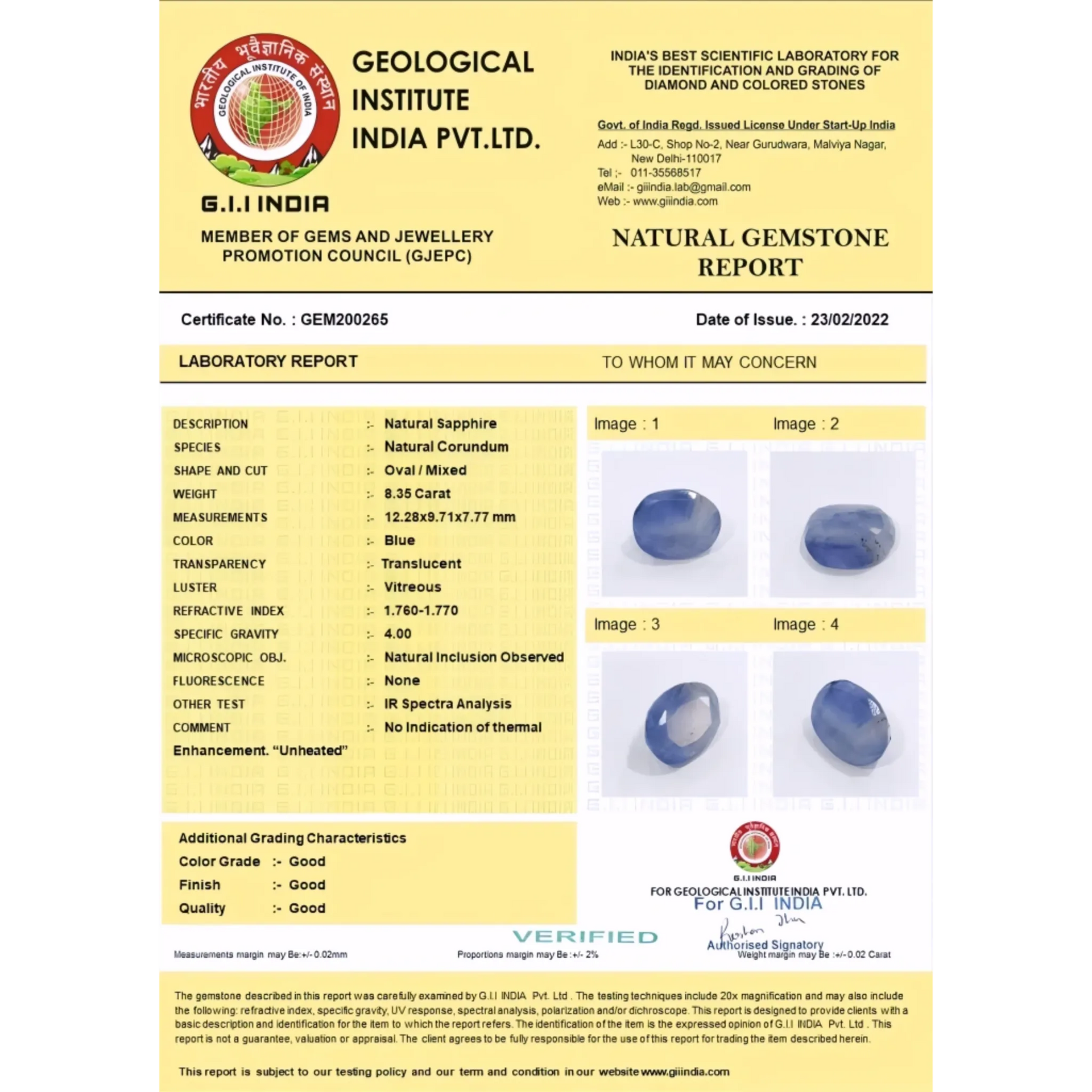 Certified Astrological Blue Sapphire 8.35 Carat– Best for Vedic Astrology