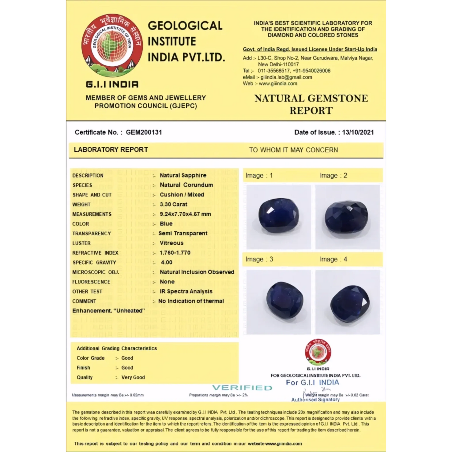 Unheated Ceylon Blue Sapphire for Sale Certified Natural Loose Gemstone 3.3 carat
