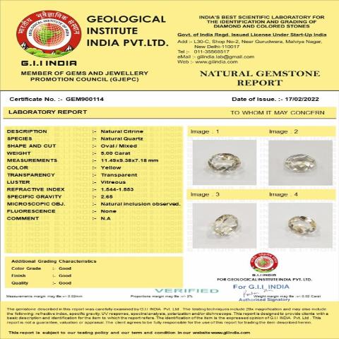 5 carat 5.5 ratti GII natural Brazil oval shape Yellow Citrine stone