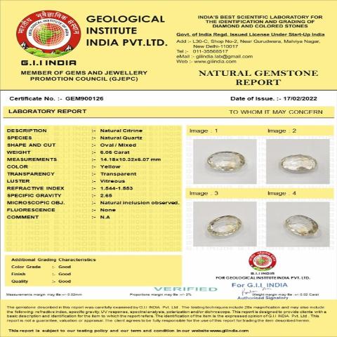 6.06 carat 6.67 ratti natural GII certified Brazil oval shape citrine stone