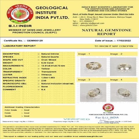 6.22 carat 7 ratti natural GII certified Brazil oval shape citrine stone
