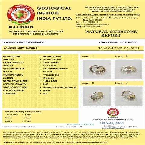 6.73 carat 7.4 ratti natural GII certified Brazil oval shape citrine stone