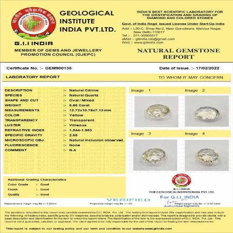 6.86 carat 7.55 ratti natural GII certified Brazil oval shape citrine stone