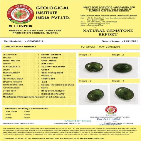 2.85 carat 3.25 ratti IGL certified natural Zambia oval shape Emerald stone