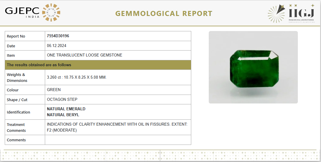 3.26Carat 3.59Ratti Natural Zambian Octagon shape Green Emerald Gemstone