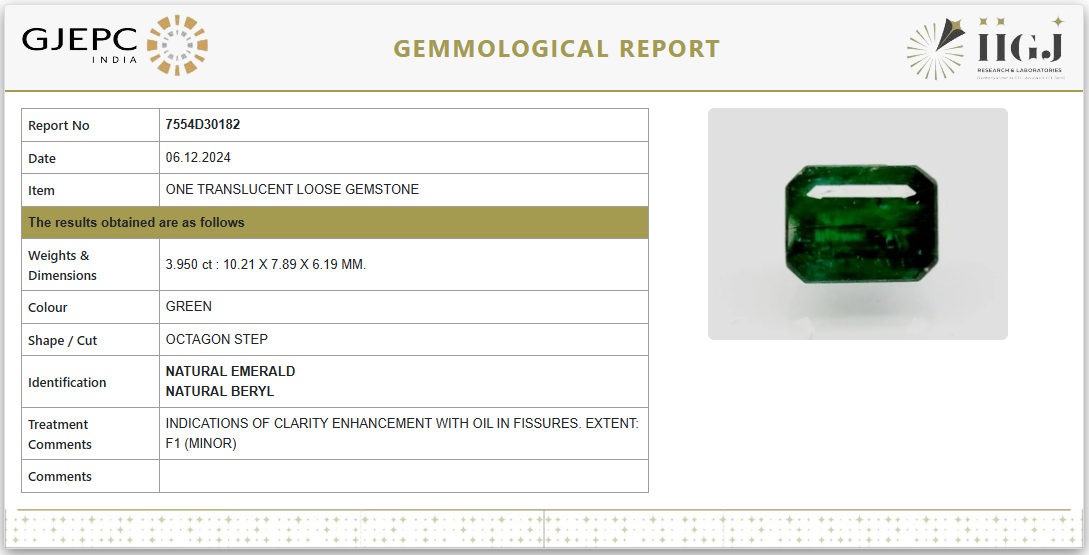 3.95Carat 4.35Ratti Natural Zambian Octagon shape Green Emerald Gemstone