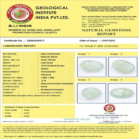 4.55 carat 5.01 ratti GII certified natural Colombian Oval shape Emerald stone