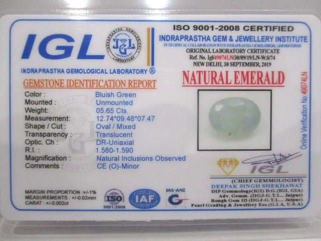 5.65 carat 6.22 ratti IGL certified natural Brazil Oval shape Emerald stone