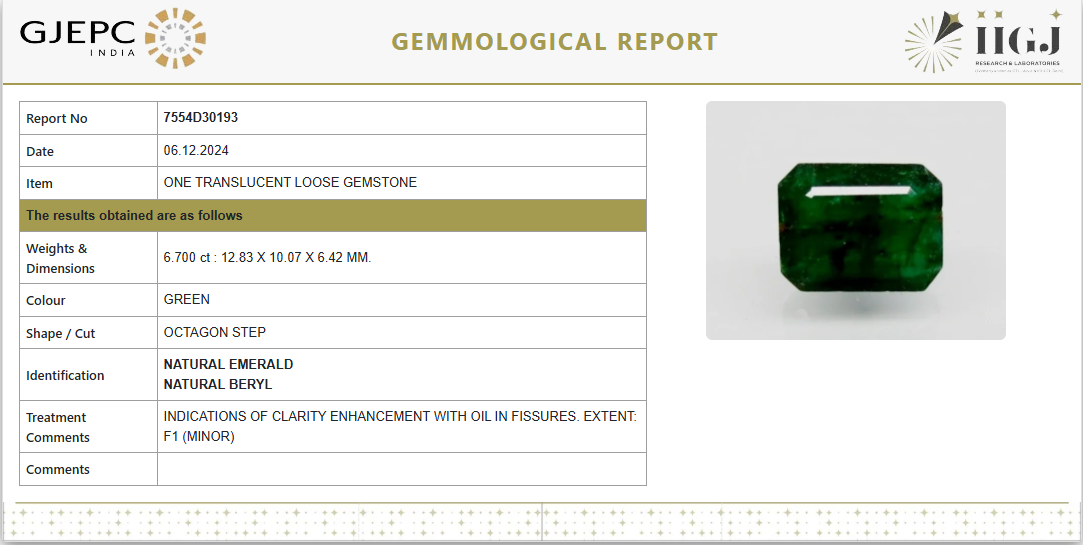 6.7 Carat 7.37 Ratti Natural Zambian Octagonal shape Green Emerald Gemstone