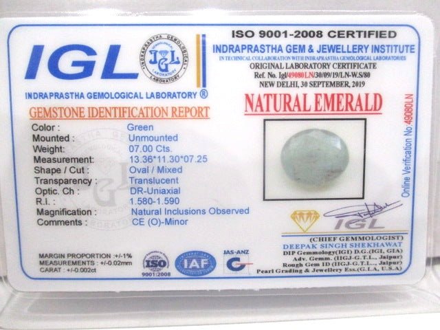 7 Carat 7.7 Ratti Natural IGL Certified Colombian Oval shape Green Emerald Gemstone