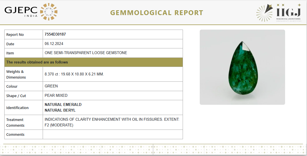 8.37Carat 9.21Ratti Natural Zambian Pear shape Green Emerald Gemstone