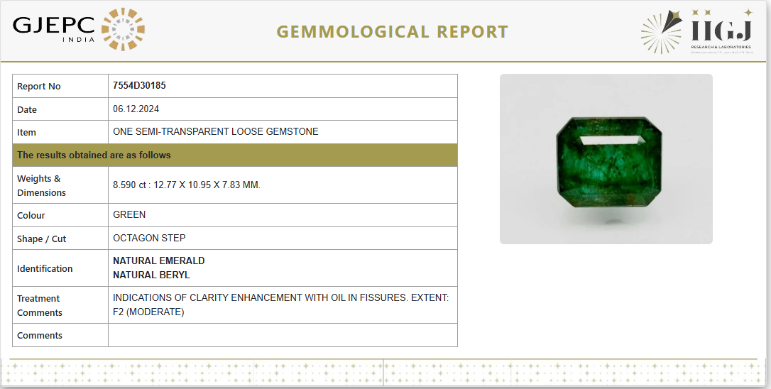 8.59Carat 9.45Ratti Natural Zambian Octagon shape Green Emerald Gemstone