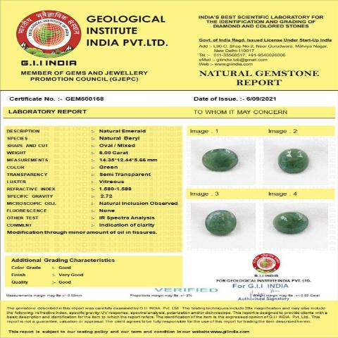 8 Carat 9 Ratti Natural GII Certified Zambian Oval shape Green Emerald Gemstone