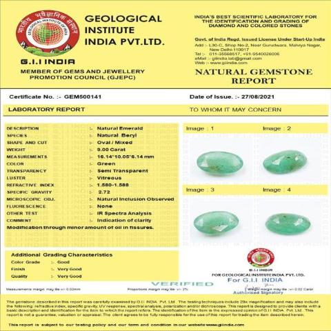 9 carat 10 ratti GII certified natural Colombian oval shape Emerald stone