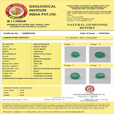 Discover the Potent Astrological Power of AA+ 1.85 CARAT 2.04 RATTI Zambian Panna: The Ultimate Gemstone for Prosperity