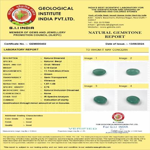 Discover the Potent Astrological Power of AA+ 3.15 CARAT 3.47 RATTI Zambian Panna: The Ultimate Gemstone for Prosperity
