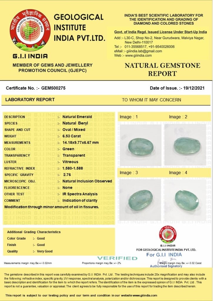 Discover the Potent Astrological Power of AA + 6.53 CARAT 7.25 RATTI Zambian Panna: The Ultimate Gemstone for Prosperity