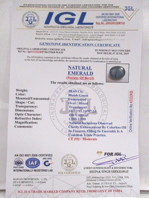 Discover the Potent Astrological Power of AA+ 8.69 CARAT 9.56 RATTI Zambian Panna: The Ultimate Gemstone for Prosperity
