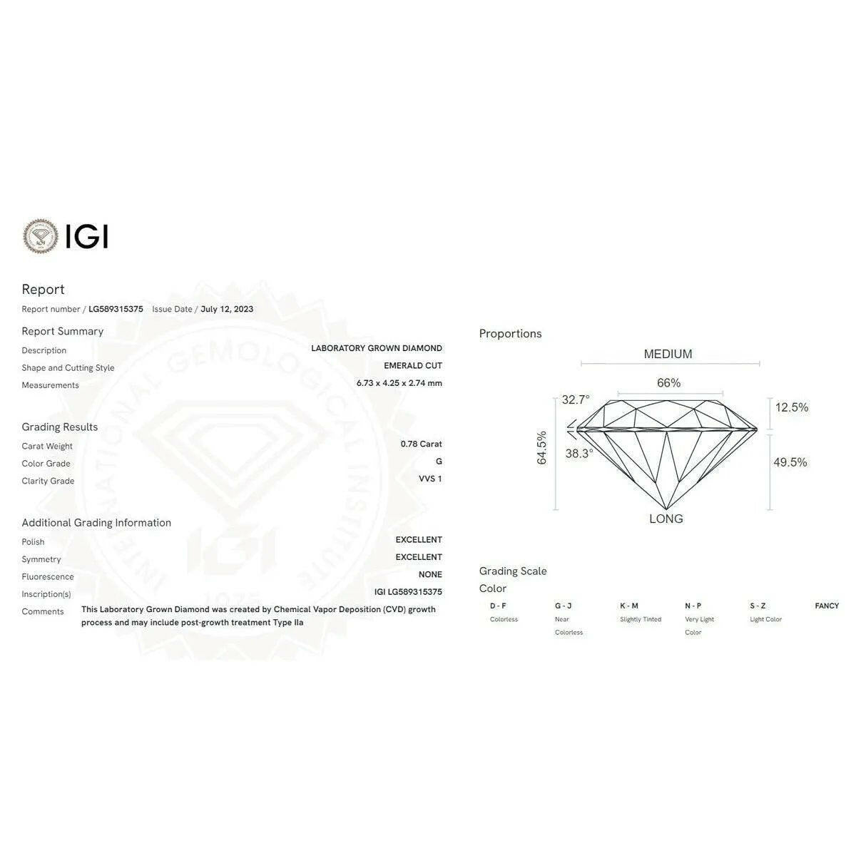 Emerald-Shape 0.78 carat Lab-Grown Diamond