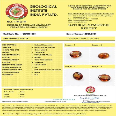 1.65 Carat (2 Ratti) Natural Ceylon Oval Hessonite (Gomed) Gemstone