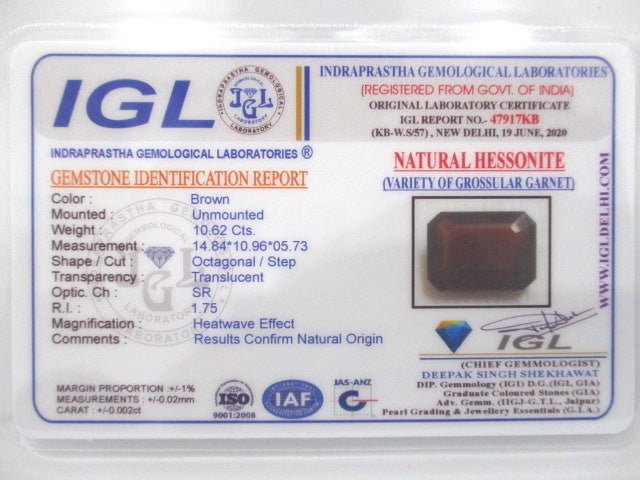 10.62 Carat 11.68 Ratti IGL Certified Natural Ceylon (Sri Lanka)Octagonal shape Hessonite (Gomed) Gemstone