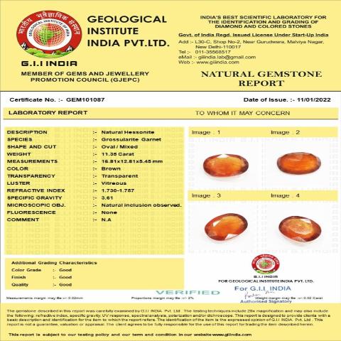 11.35 Carat (12.49 Ratti) Natural Africa Oval Hessonite (Gomed) Gemstone