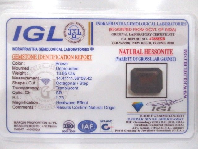 13.85 Carat (15.24 Ratti) Natural Ceylon Octagonal Hessonite (Gomed) Gemstone