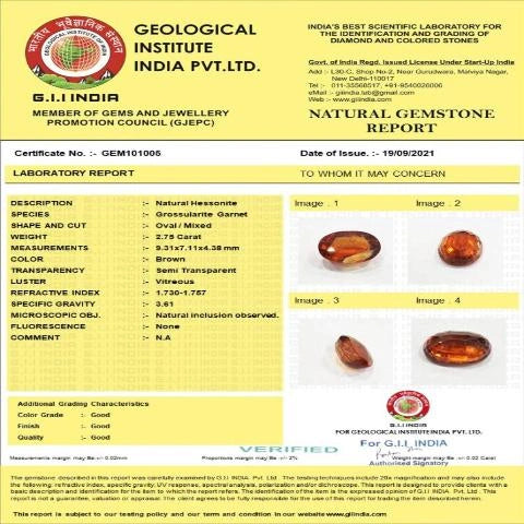 2.75 Carat (3.03 Ratti) IGL Certified Natural Ceylon (Sri Lanka) Hessonite (Gomed) Gemstone