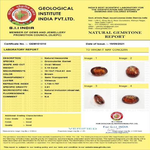 3.15 Carat (3.47 Ratti) Natural Ceylon Oval Hessonite (Gomed) Gemstone
