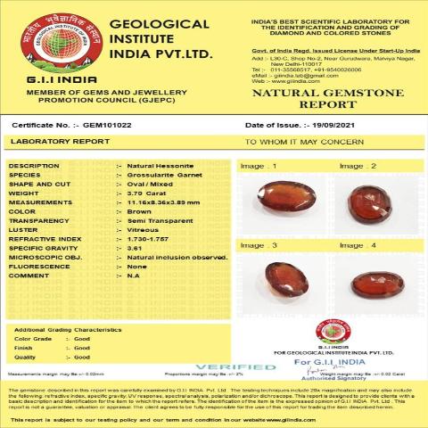 3.7 Carat (4.25 Ratti) Natural Africa Oval Hessonite (Gomed) Gemstone
