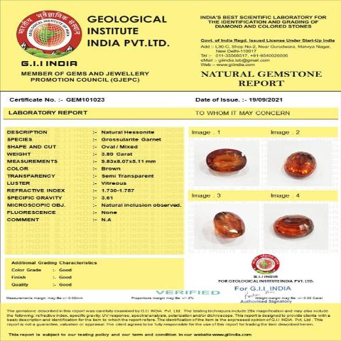 3.8 Carat (4.25 Ratti) Natural Ceylon Oval Hessonite (Gomed) Gemstone