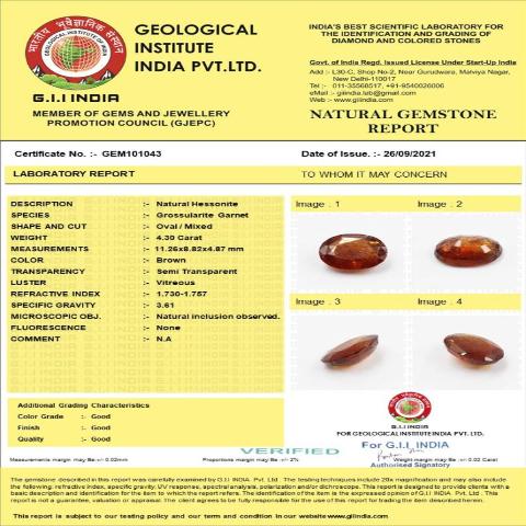4.3 Carat (4.73 Ratti) Natural Ceylon Oval Hessonite (Gomed) Gemstone