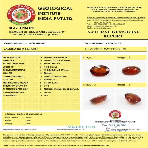 4.8 carat 5.28 ratti GII certified natural ceylon oval shape hessonite(Gomed) stone