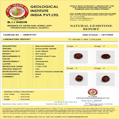 5.07 carat 5.58 ratti GII certified natural ceylon oval shape hessonite(Gomed) stone