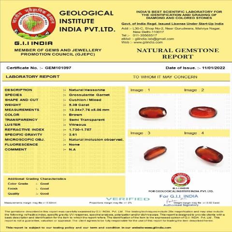 5.38 Carat (6 Ratti) Natural Ceylon Cushion Hessonite (Gomed) Gemstone
