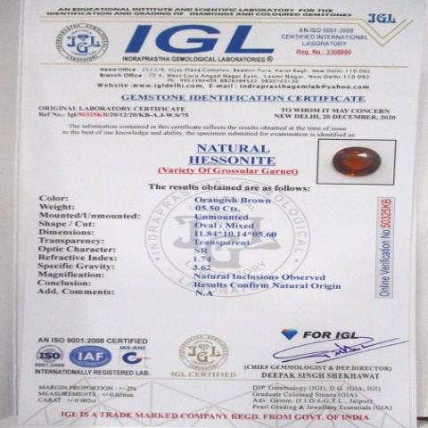 5.5 carat 6.25 ratti IGL certified natural African hessonite(gomed) stone