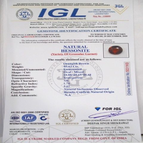5.63 Carat (6.25 Ratti) IGL Certified Natural African Hessonite (Gomed) Gemstone