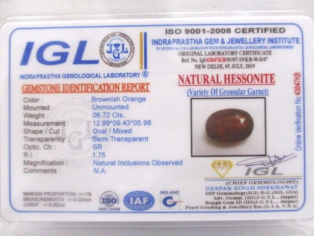 6.72 Carat (7.39 Ratti) Natural Africa Oval Hessonite (Gomed) Gemstone