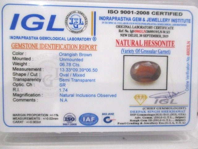 6.78 Carat (7.46 Ratti) Natural Ceylon Oval Hessonite (Gomed) Gemstone