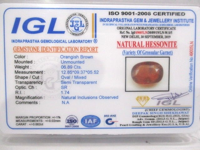 6.89 Carat (7.58 Ratti) Natural Ceylon Oval Hessonite (Gomed) Gemstone