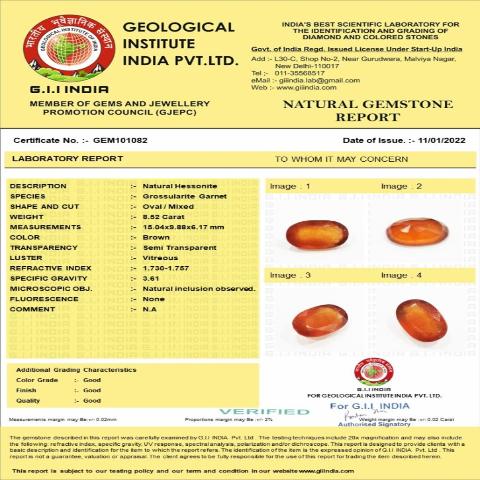 8.52 Carat (9.37 Ratti) Natural Africa Oval Hessonite (Gomed) Gemstone