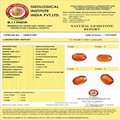 8.6 Carat (9.46 Ratti) Natural Africa Oval Hessonite (Gomed) Gemstone