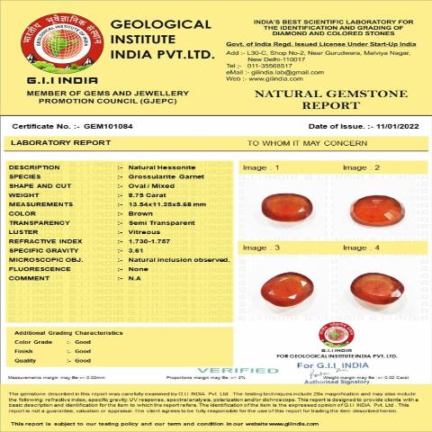 8.75 Carat (9.63 Ratti) Natural Africa Oval Hessonite (Gomed) Gemstone