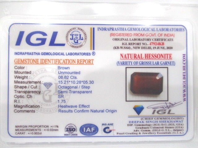 8.82 Carat (9.7 Ratti) IGL Certified Natural Ceylon (Sri Lanka) Hessonite (Gomed) Gemstone